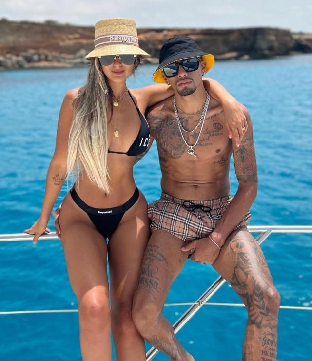 7月15日,巴西前锋拉菲尼亚正式签约巴萨。随他一起到巴塞罗那的,还有他的妻子纳塔莉娅·罗德里戈。纳塔莉娅昵称塔娅,她跟拉菲尼亚2021年确认恋情,今年2月8日结的婚。不过,两人算是青梅竹马,认识已经有十年之久。