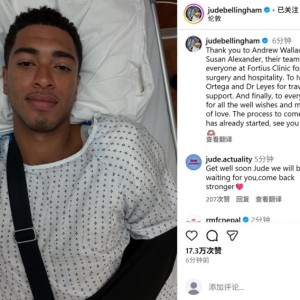 7月18日讯 贝林厄姆此前成功接受左肩复发性脱臼手术,预计10-12周复出,球员也在个人社媒发文表示感谢。贝林厄姆写道:...